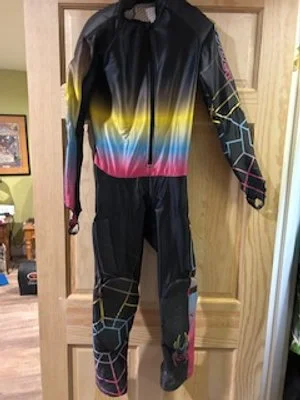 Product Description: This suit is in great shape except one pad came loose on the back. I still have the pad, should be easy to sew back into the pocket. This says USA 12, but my racer wore it at age 8 and 9.