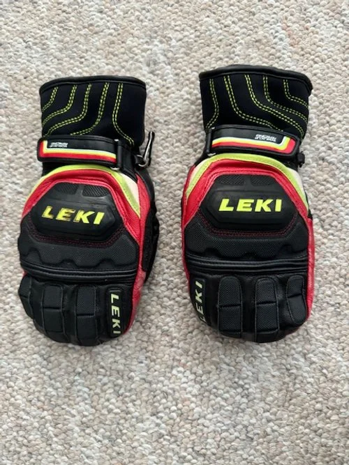 Product Description: Leki Race Gloves, size 6 Juniors, Black, White, Yellow and Blue.