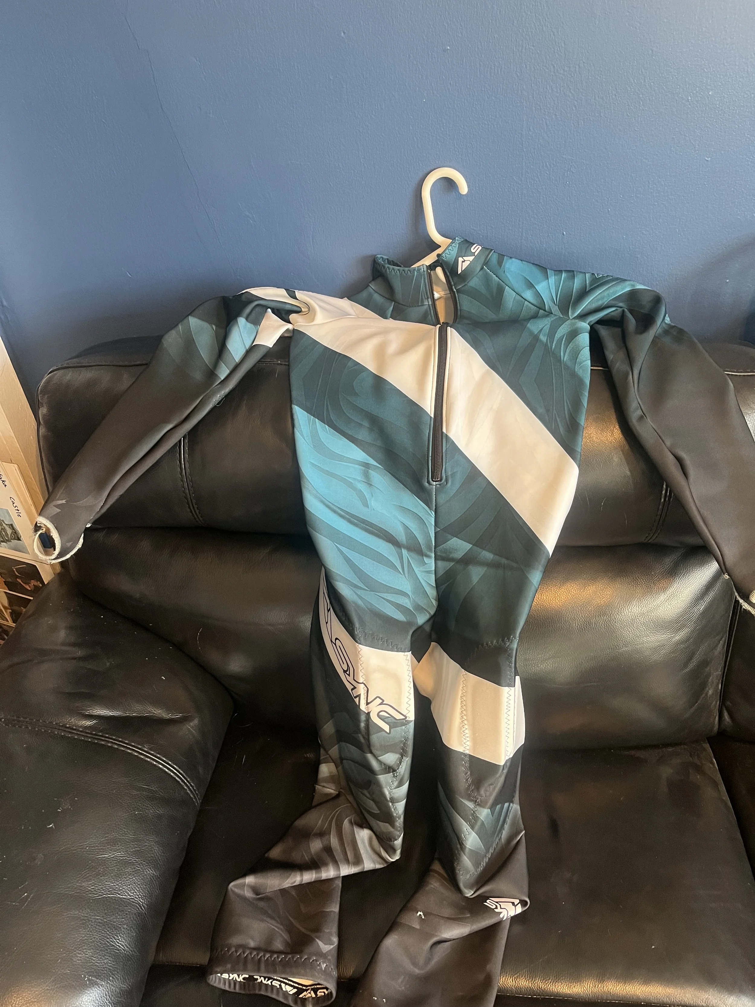 Product Description: Race suit was worn only 3 times by my son in the 23-24 race season. A little pilling at the leg. Color is midnight. Size is large. I purchased it for $360..